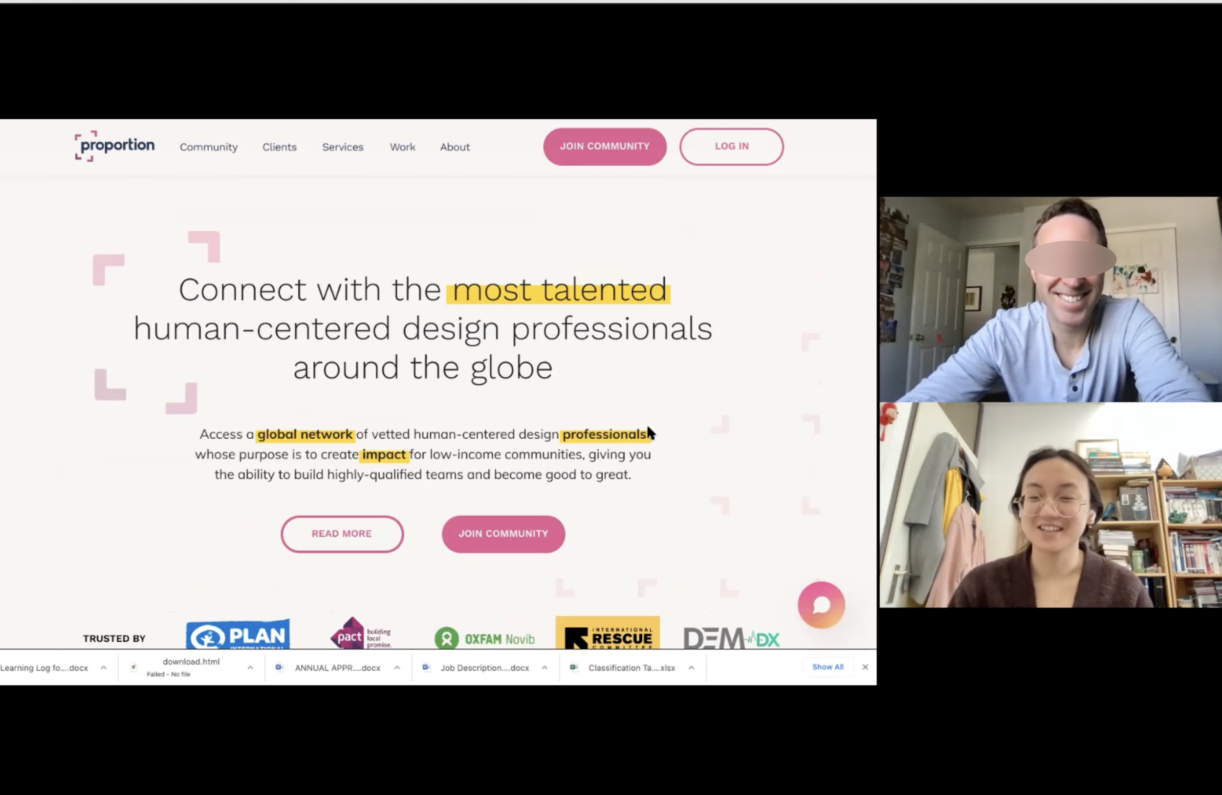 In order to provide qualified HCD professionals to INGOs, Proportion aims to vet candidates before joining the community. Those who don't pass the vetting process will be directed to Proportion Academy for a short HCD course to enhance their qualifications.