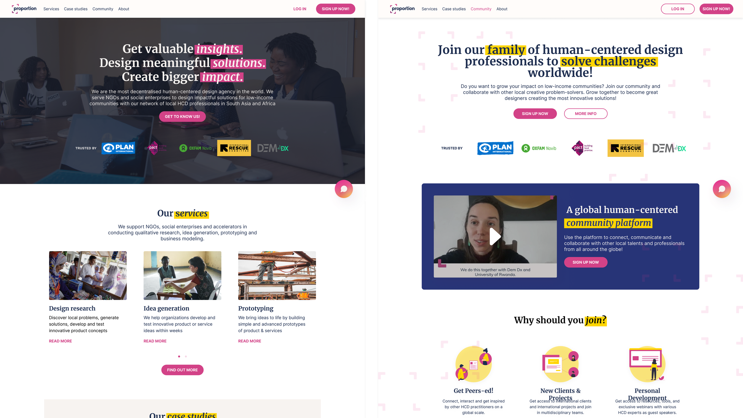 As Proportion Global's digital identity, the website must emphasize content for visibility and credibility to build trust with clients and HCD professionals. Changes include: