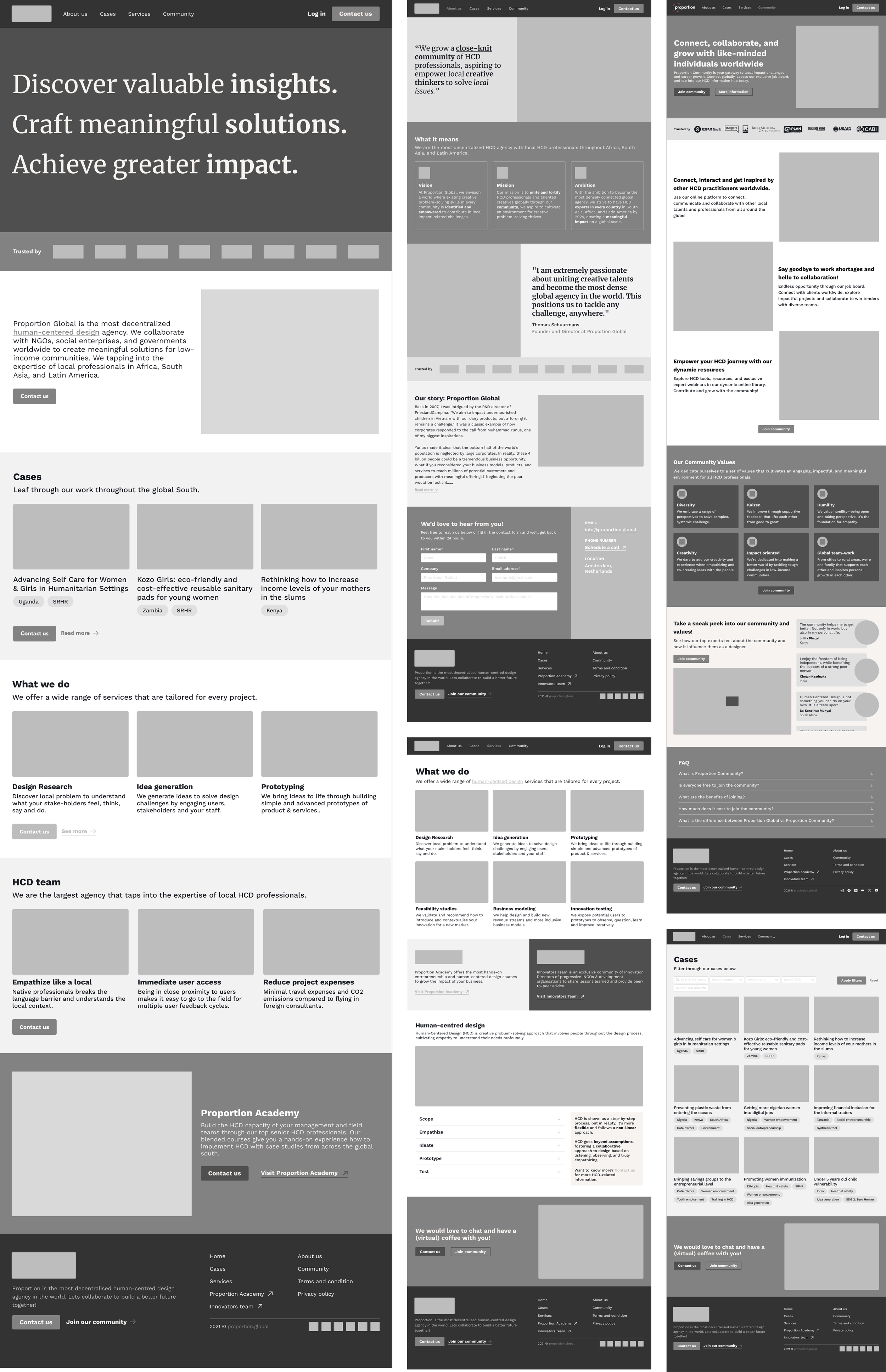 The website will contain all information about Proportion Global as a design agency, structured for INGOs interested in collaborating with Proportion and its network.